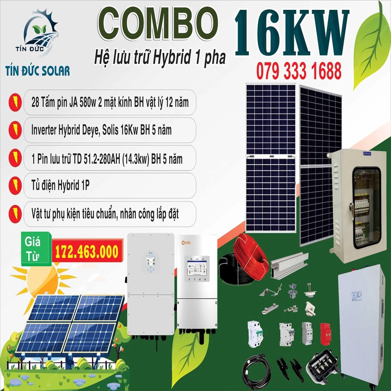 Các thành phần chính của combo 16kW 1 pha: