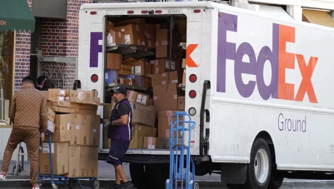 Một công nhân đang chất hàng lên xe tải FedEx, tại San Francisco. Ảnh: Getty Images